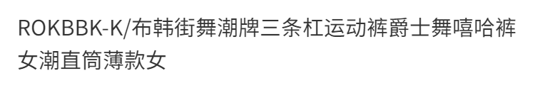 ROKBBK-K/Rokbbk-K Hip Hop Fashion Brand Three-Stripe Track Pants Jazz Dance Hip-Hop Pants Women's Trendy Straight Thin Women