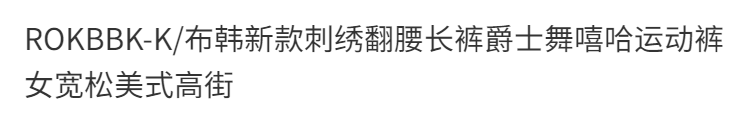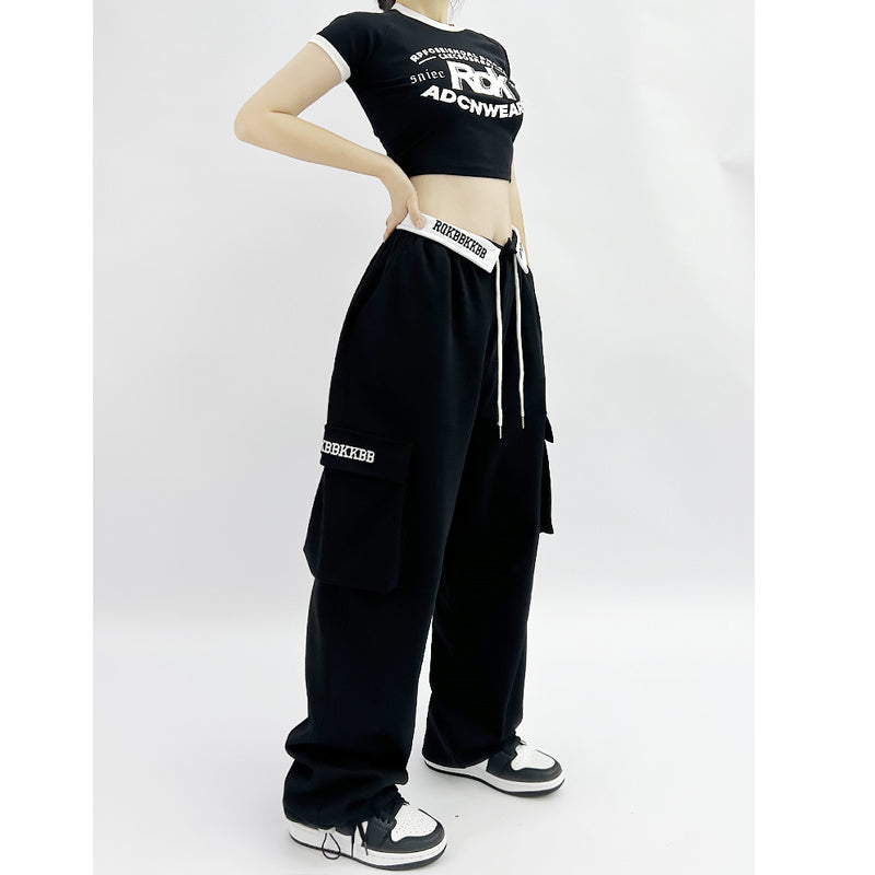 ROKBBK-K/Rokbbk-K New Embroidered Waist Pants Jazz Hip Hop Sports Pants Female Loose American High Street