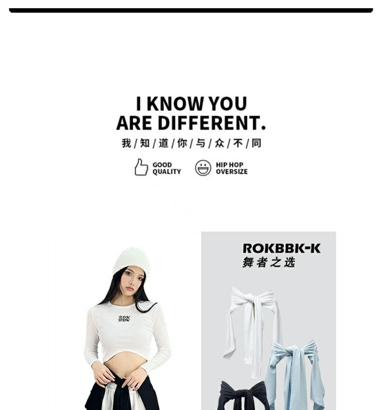 ROKBBK-K/Rokbbk-K Street Dance Fashion Brand Jazz DancehiphopShort Cardigan Two-Way Women's Hip Hop Lace-up Waist Outer Wear
